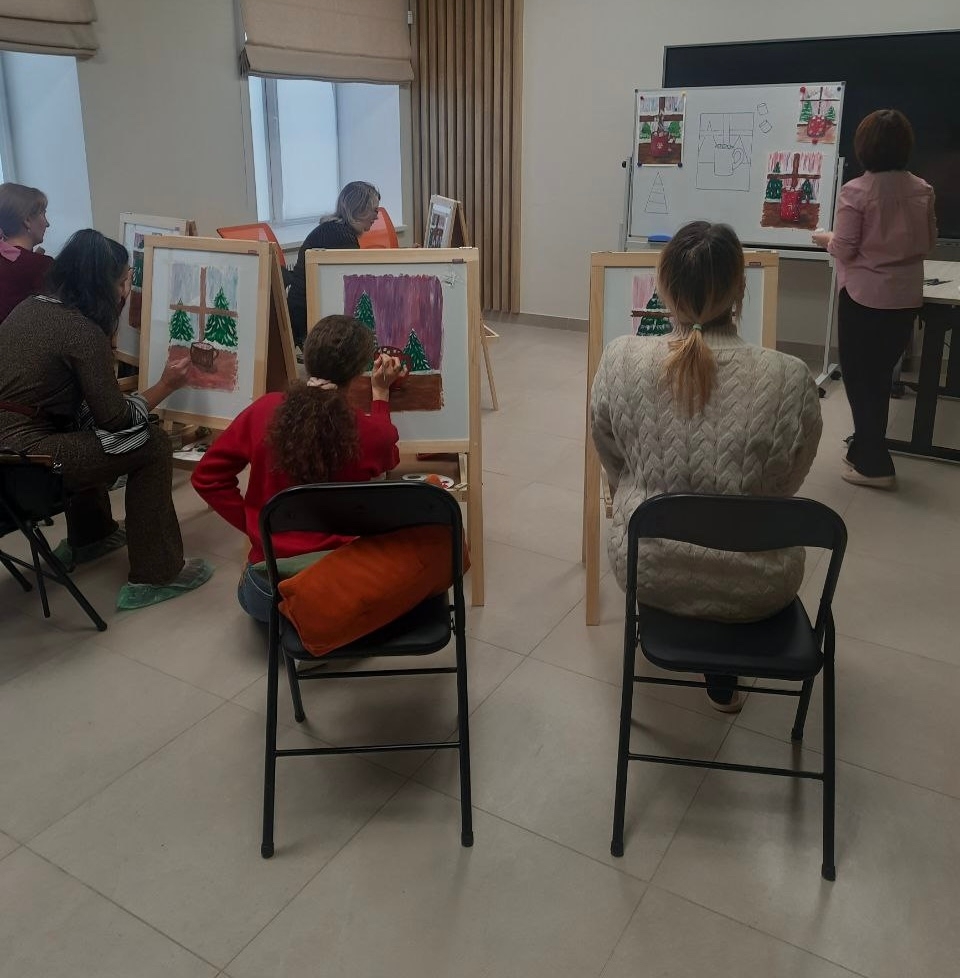 В центре «ПроДобро» продолжаются мастер-классы в рамках новогодних мероприятий. На этот раз для жителей столицы провели мастер-класс по рисованию.